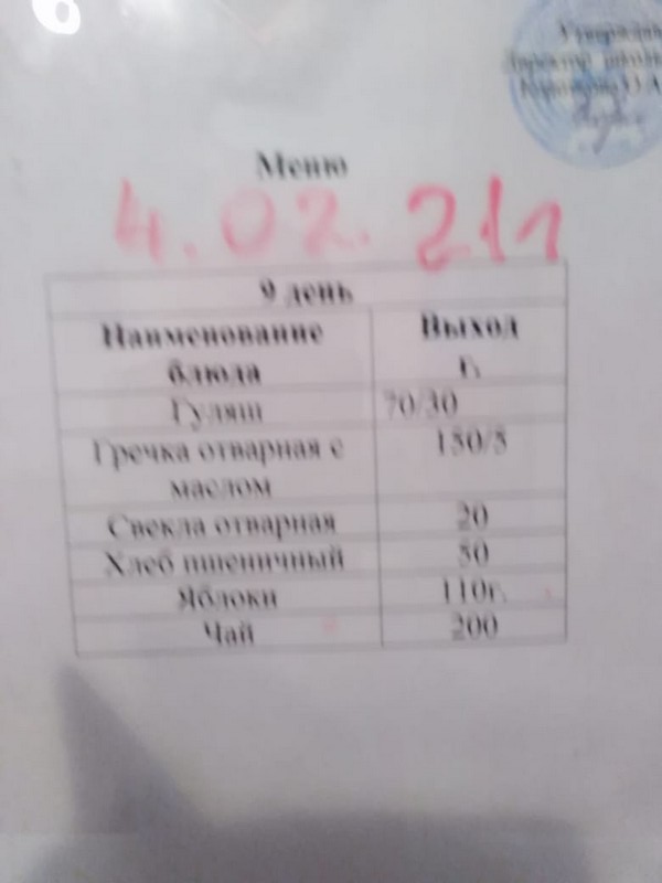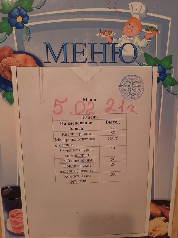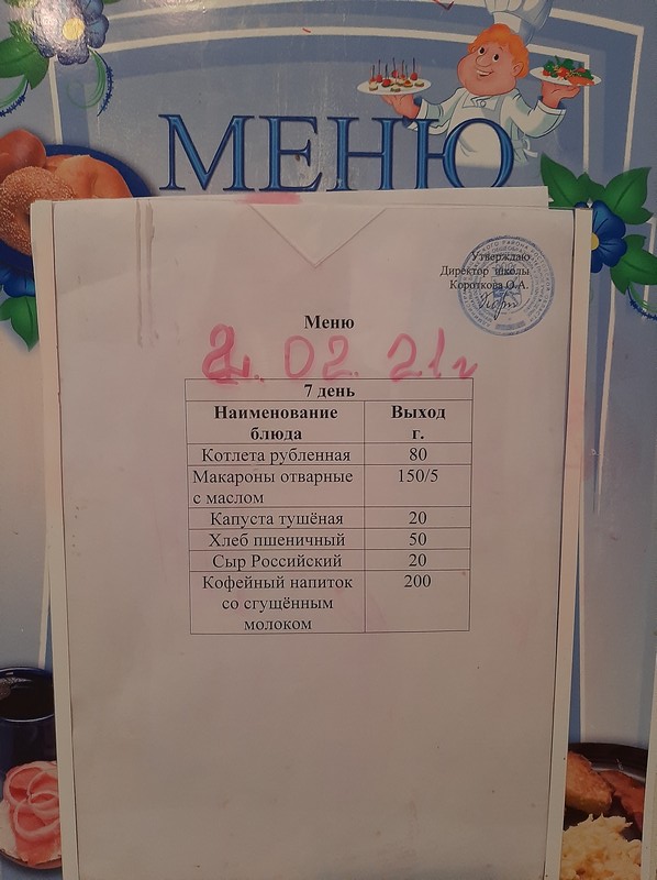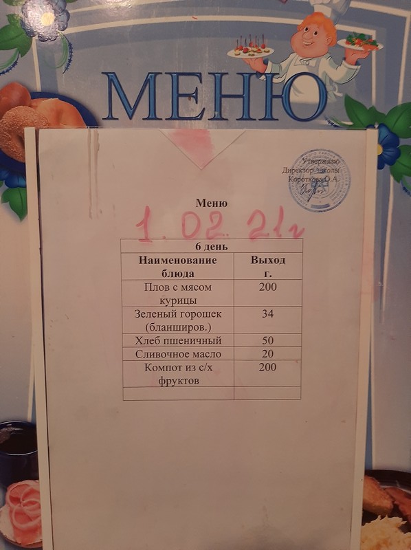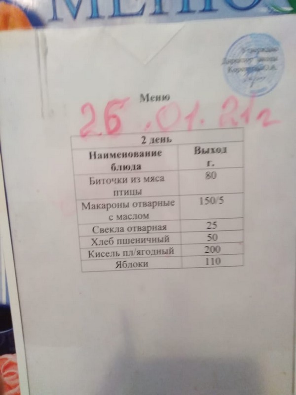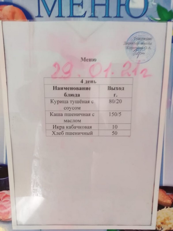 Меню ежедневного горячего питания