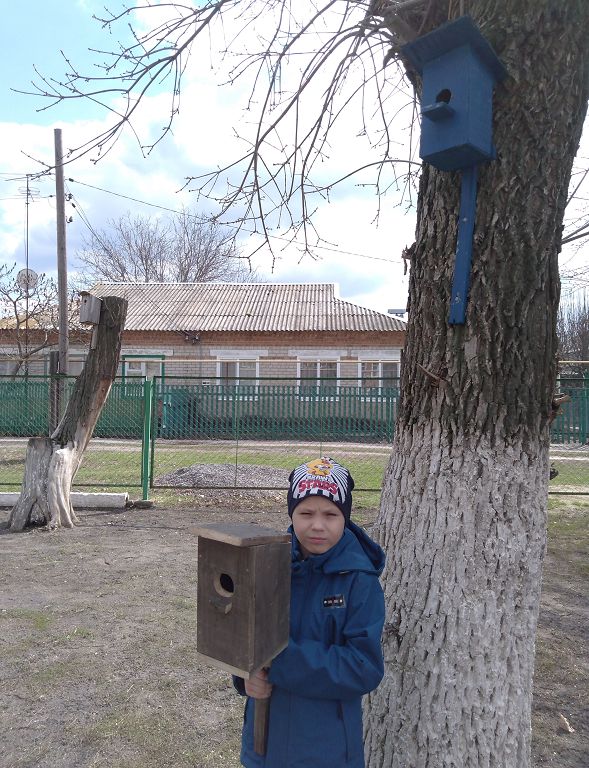 Дима Родько с папой изготовили скворечник, который повесили в школьном дворе. Его уже обживают пернатые.