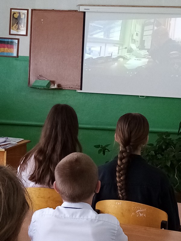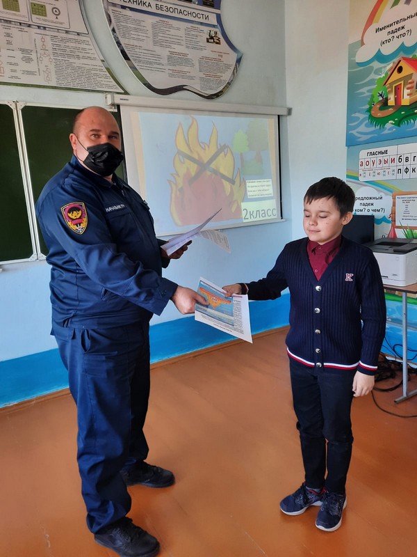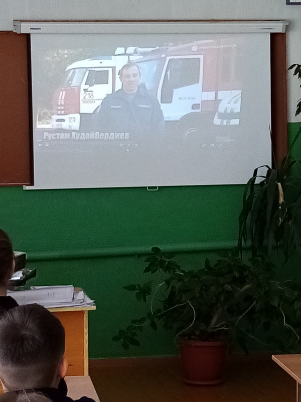 На уроке присутствовал Забродин Павел Владимирович из пожарной части в Скосырской. Он рассказал о пожарной безопасности, о действиях при возникновении чрезвычайных ситуаций природного и техногенного характера в местах массового пребывания людей, обратился к присутствующим с просьбой соблюдать меры безопасности на каникулах.