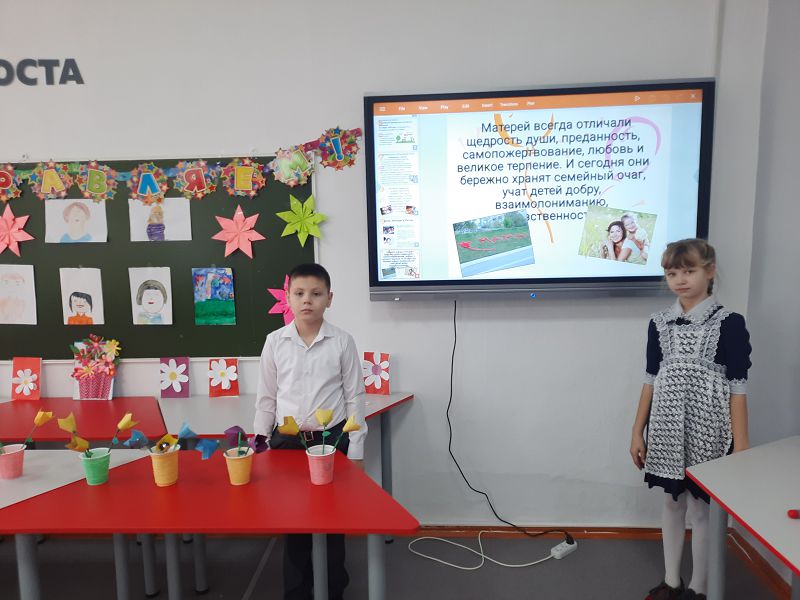 24 ноября в школе состоялся праздничный концерт для мам, бабушек: «Добрая милая мама». В концерте приняли участие учащиеся 2-4 классов .Ребята рассказывали стихотворения, пели песни, танцевали, исполняли шуточные сценки, а в конце мероприятия вручили всем мама поздравительные открытки, сделанные своими руками.